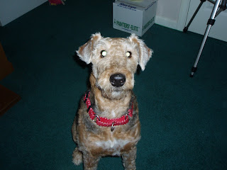 Hi everybuddy! It's me, Patches! I don't have a whole lot of time, but I just wanted to post SOMETHING so everydoggie knows that we're still here! I'm getting all psyched up for the Aire Care Fair on Sunday. Mom was going to give me a b-a-t-h today, but since it's raining like crazy (thank you, Ida), I have to wait until tomorrow. Every time Mom gives one of us a bath, she says that the next time, she's going to PAY someone else to do it. We'll see how that turns out for her!